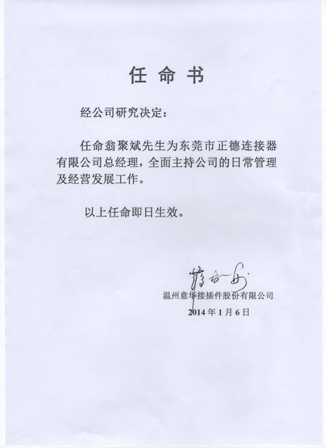 任命书